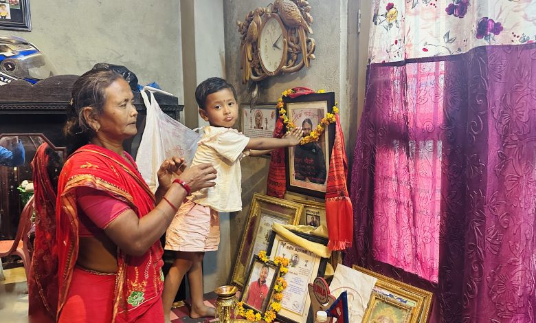 विजयकी आमा जलेश्वरी देवी अचेल टोलाएर बस्नुहुन्छ । मोबाइलमा छोराको फोटो हेरेर चित्त बुझाउने प्रयास गर्नुहुन्छ । काखमा सानी नातिनी लिएर टोलाउनुहुन्छ । कहिलेकाहीँ त्यही नातिनीले मन बहलाउँछिन्– सहिद विजयले छाडेर गएको अन्तिम चिनो ।