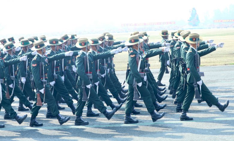 यसअघि सेनाको हेलिकप्टर र ड्रोनमार्फत पुष्पवृष्टि गर्नाका साथै राष्ट्रिय झण्डा र ‘सेना दिवस–२०८२’ लेखिएको ब्यानर प्रदर्शन गरियो । त्यस अवसरमा सेनाले राइफल र तोपबाट महाशिवरात्रि बढाइँ तथा कवाज प्रस्तुत गरेको थियो । समारोहमा सेनाद्वारा विभिन्न रणकौशल तथा परम्परागत वेशभूषा झल्कने विविध कला, नृत्य र सङ्गीतको धुन प्रस्तुत गरियो । कार्यक्रममा सेनाका टुकडीले मार्चपास समेत प्रस्तुत गरेको थियो ।